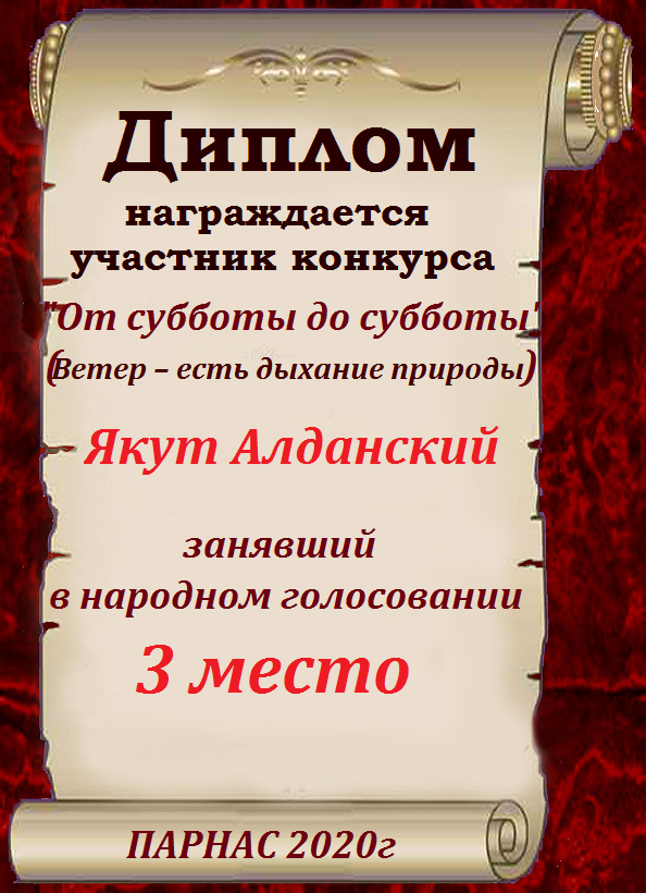 Третье место по итогам конкурса «Ветер снова мне шепчет о счастье ", народное голосование. Поздравляем с прекрасной победой!
