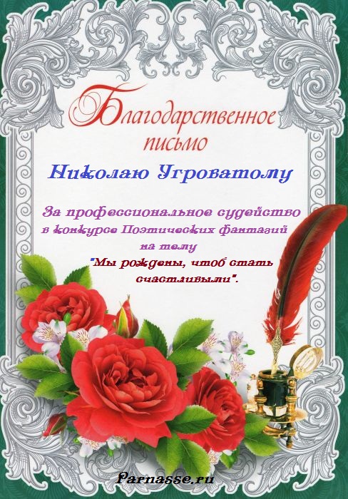 Благодарим за профессиональное судейство конкурса "Мы рождены. чтоб стать счастливыми"
