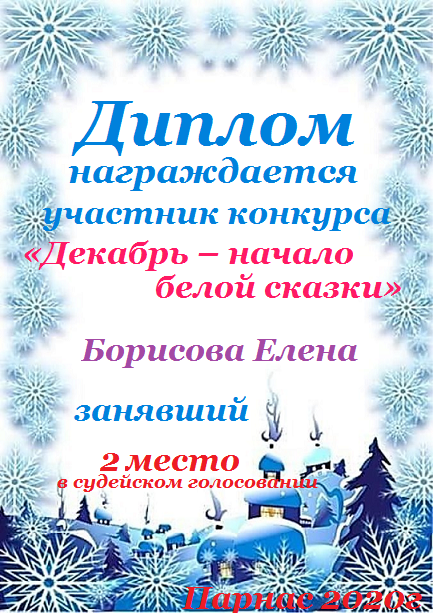 Второе место по итогам литературного конкурса «Замер декабрь в ожидании чуда», судейское голосование. Поздравляем с прекрасной победой!