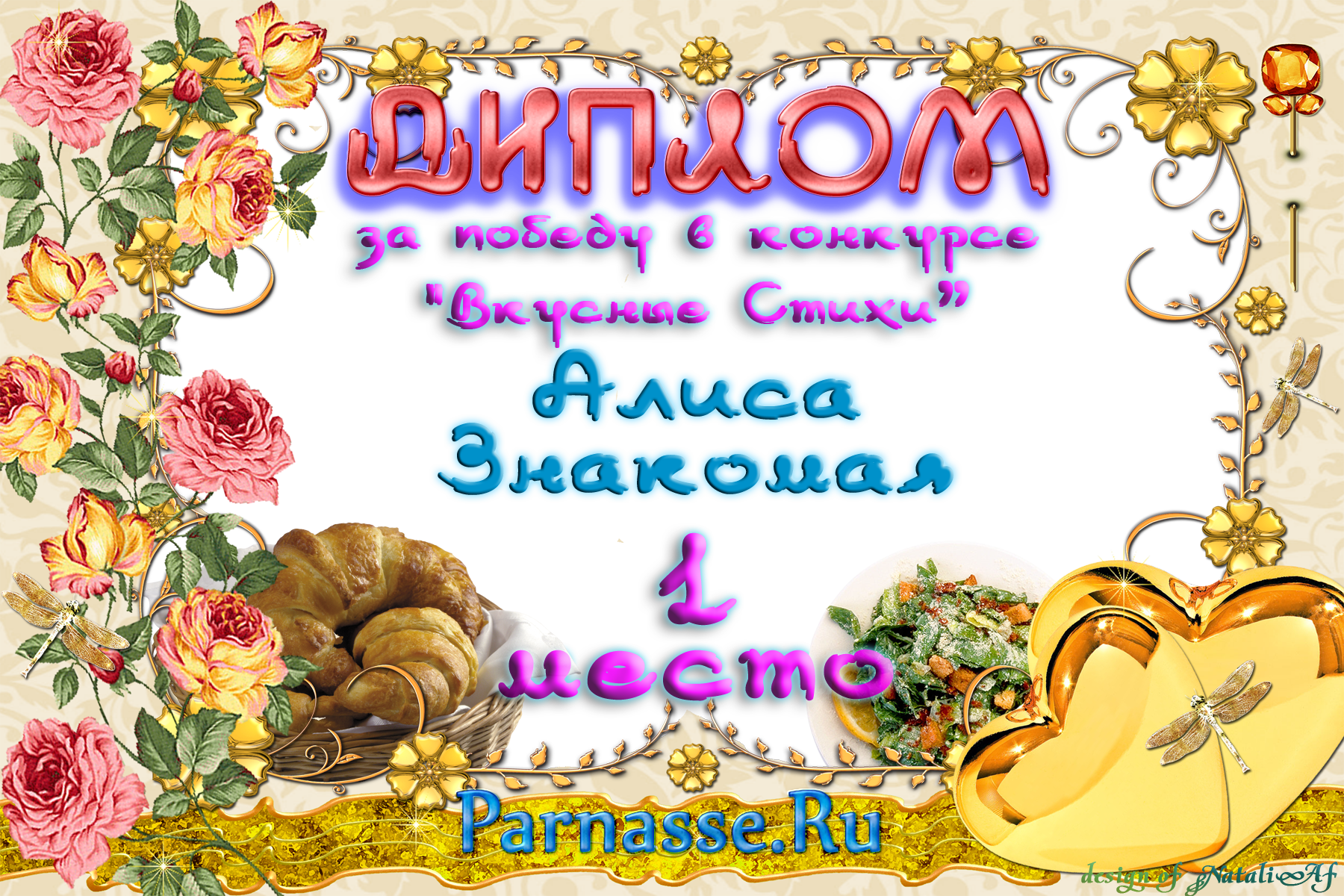 От всего сердца поздравляем Вас с блестящей ПОБЕДОЙ в номинации «Вкусная ПОЭЗИЯ», во "Вкусном конкурсе"