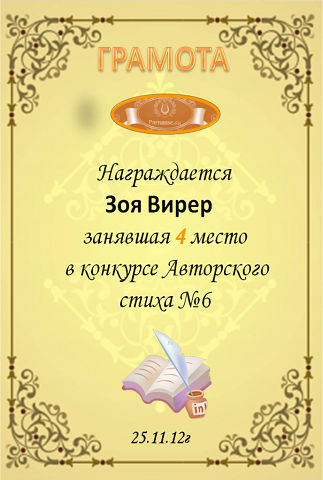 Грамота за 4 место в 120 конкурсе АКРОСТИХА (Альтернатива)!