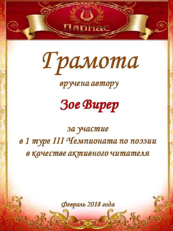 Благодарственная грамота "Активный поэт!"
