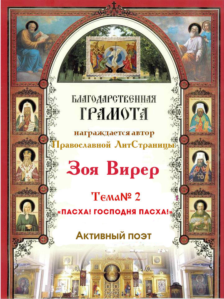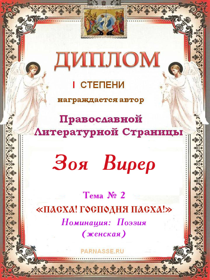 1-е место. Тема № 2 "Пасха! Господня Пасха!" Номинация Поэзия.