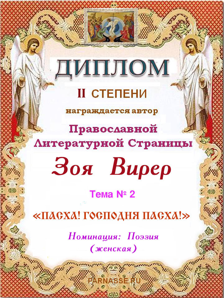 2-е место. Тема № 2 "Пасха! Господня Пасха!" Номинация Поэзия.