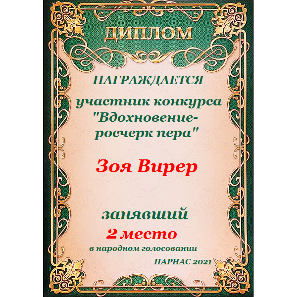 Второе место по итогам литературного конкурса «И бессонница, и вдохновение», народное голосование. Поздравляем с прекрасной победой!