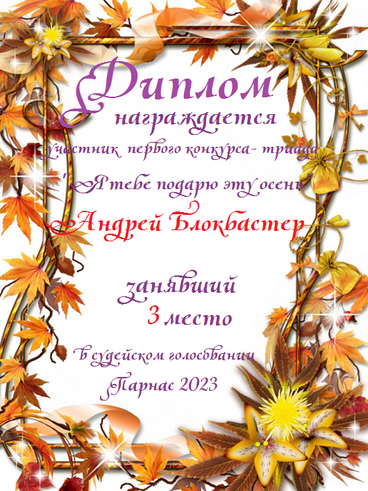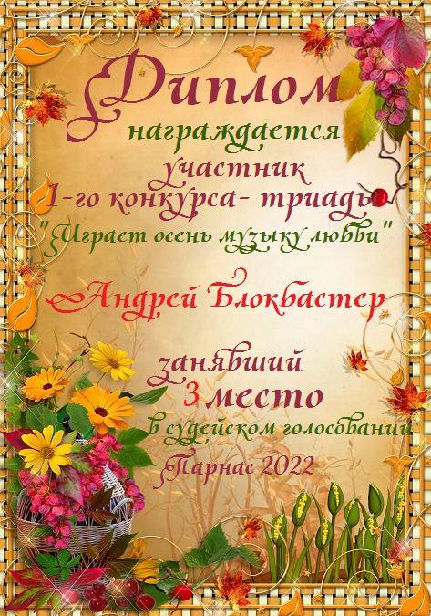 Третье место в судейском голосовании по итогам первого конкурса - триады "Играет осень музыку любви"