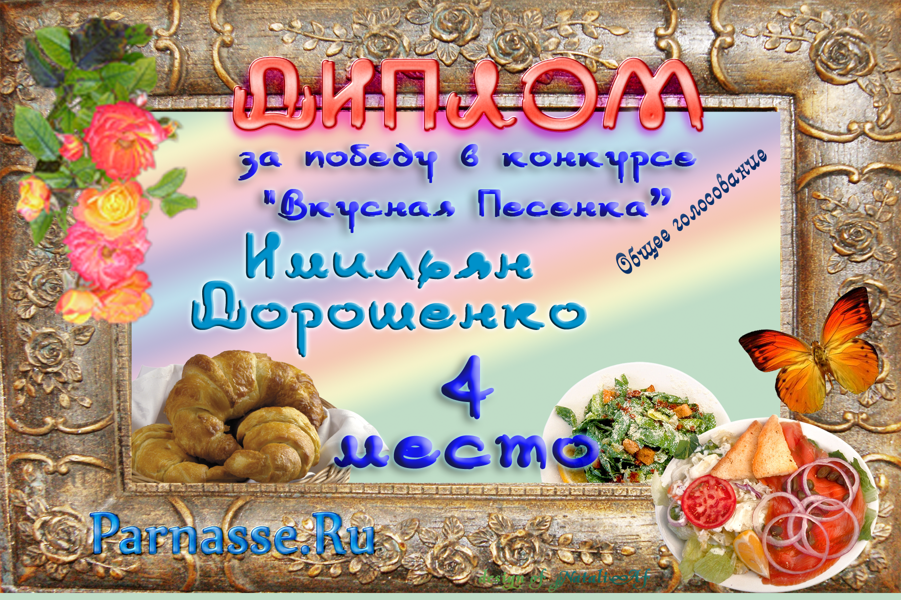 Уважаемый Имильян!От всего сердца поздравляем Вас с блестящей ПОБЕДОЙ в номинации «Вкусная ПЕСЕНКА», во "Вкусном конкурсе"